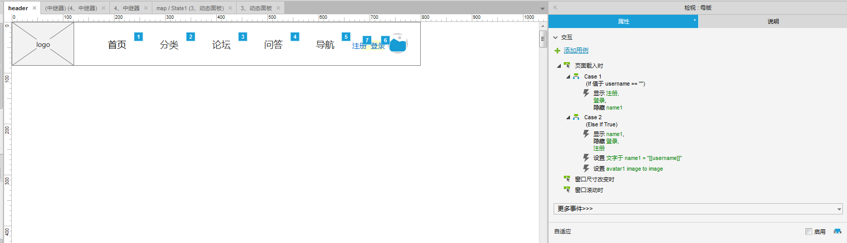 动态面板的作用主要是将不同的内容显示在同一位置,通过不同的状态显示不同的内容。有关动态面板的更多高级功能,例如尺寸改变时交互、拖动事件交互(小人接触到小星星时消失、鼠标接触到三角形时消失)、标签切换等案例,请点此查看