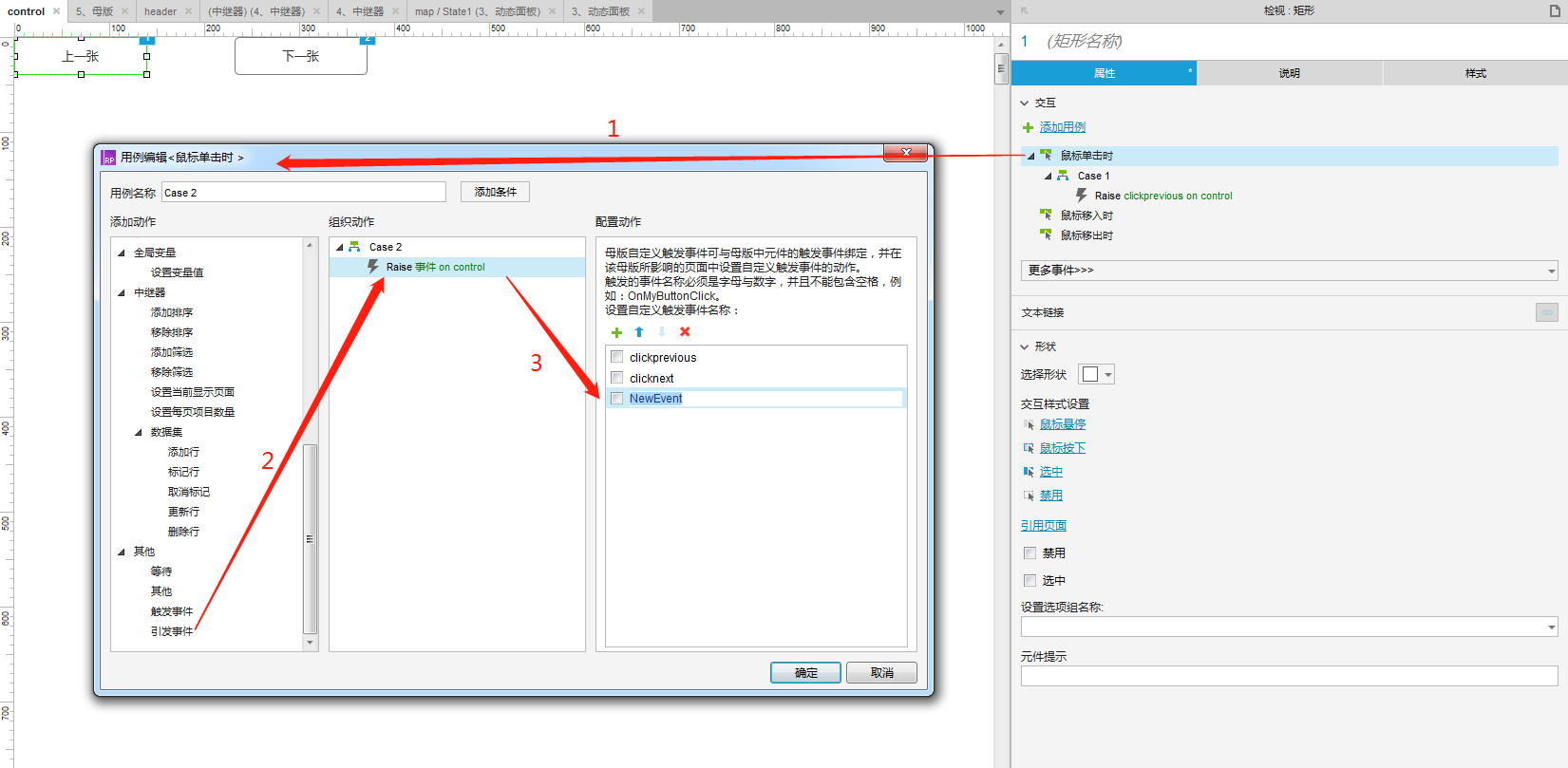 进入母版内部增加用例和自定义事件: